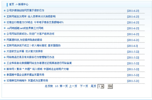 a、列表內容 是指顯示為以標題進行顯示的列表內容,這也是最常見的顯示方式之一,只要是選擇顯示不列表內容的欄目,在首頁、二級欄目,均以內容標題列表的形式展示,如下圖: